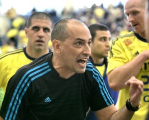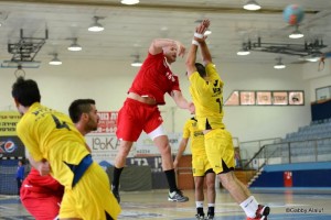 אלופת הכדוריד מכבי תל אביב ניצחה בהרצליה 30-19 את המארחת ברבע גמר גביע איגוד השופטים * הנבחן במדי מכבי תא, מילאן מירקוביץ (בתמונה של נפתלי